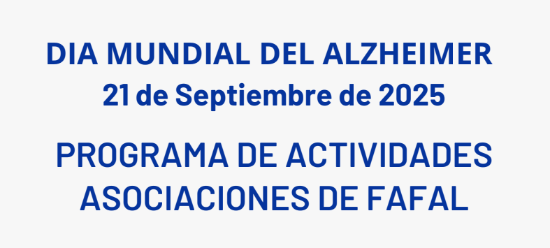 Compartimos el siguiente PDF con la programación por el Día Mundial del Alzheimer de las asociaciones que forman parte de FAFAL: